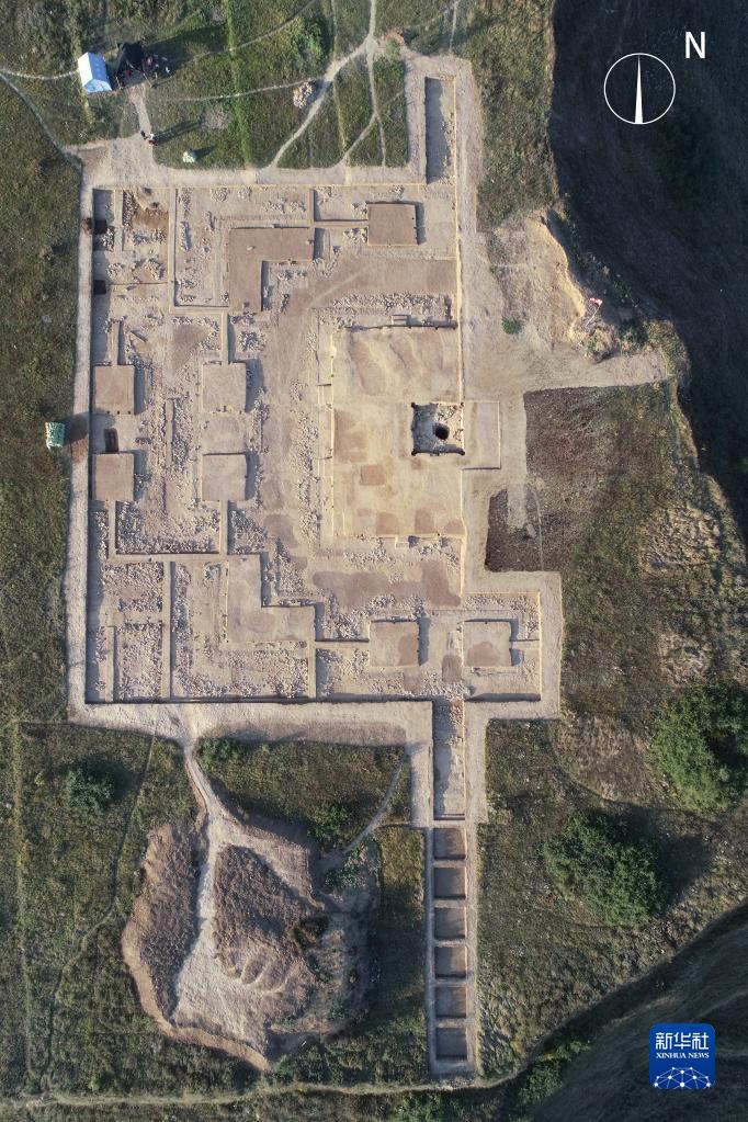 甘肅禮縣四角坪遺址中心高臺與附屬建筑發(fā)掘全景(資料照片)。