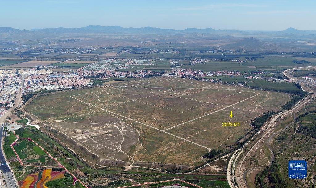 內蒙古巴林左旗遼上京皇城遺址全景和發(fā)掘位置(資料照片)。