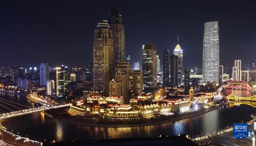 這是2月14日拍攝的天津市和平區津灣廣場(chǎng)(無(wú)人機照片)。