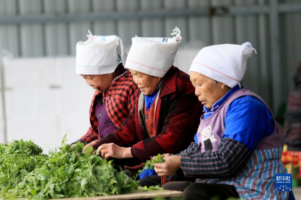 2月15日,龍里縣灣灘河鎮村民在分揀豌豆尖。