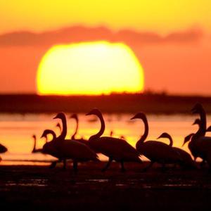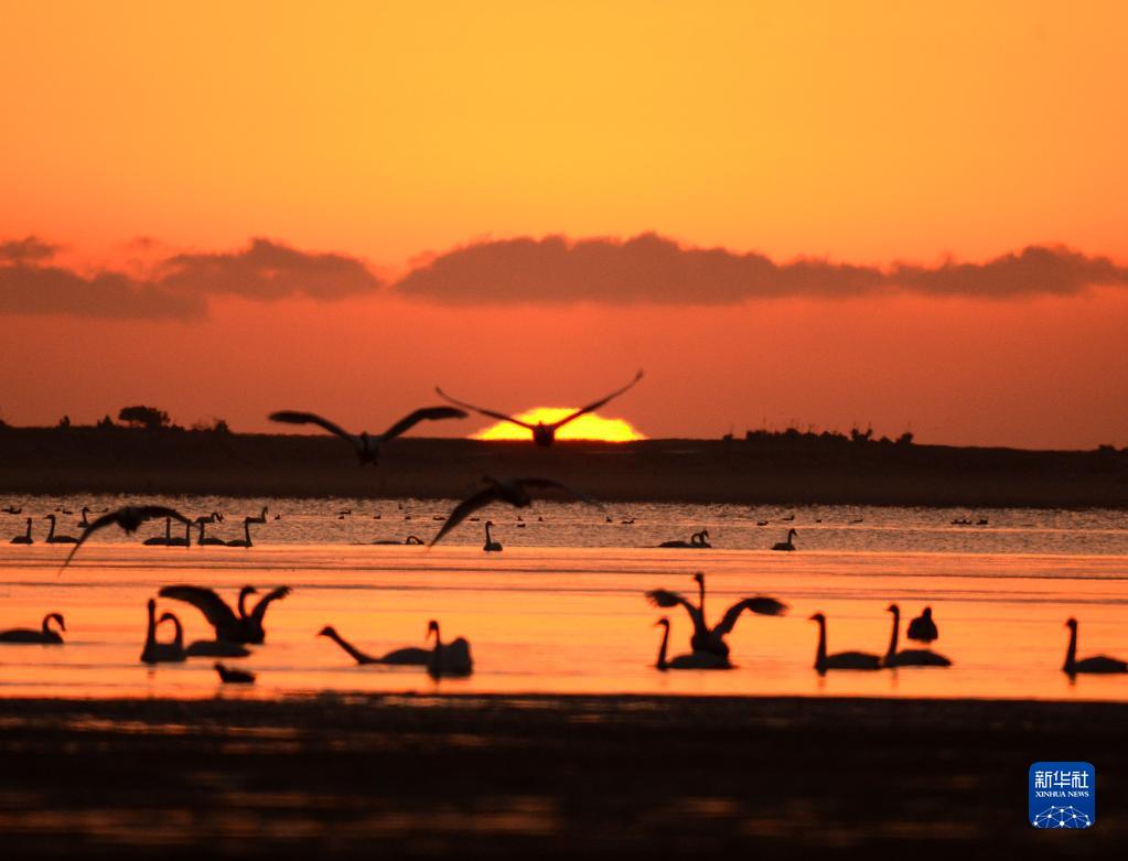 這是2月16日早晨在山東榮成天鵝湖拍攝的大天鵝。