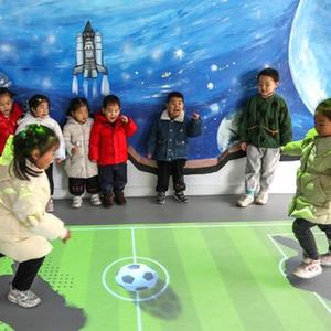 2月15日,在常州市新北區龍虎塘街道中心幼兒園(盤(pán)龍新區)游戲共享部落,小朋友們在進(jìn)行模擬足球對抗賽游戲。