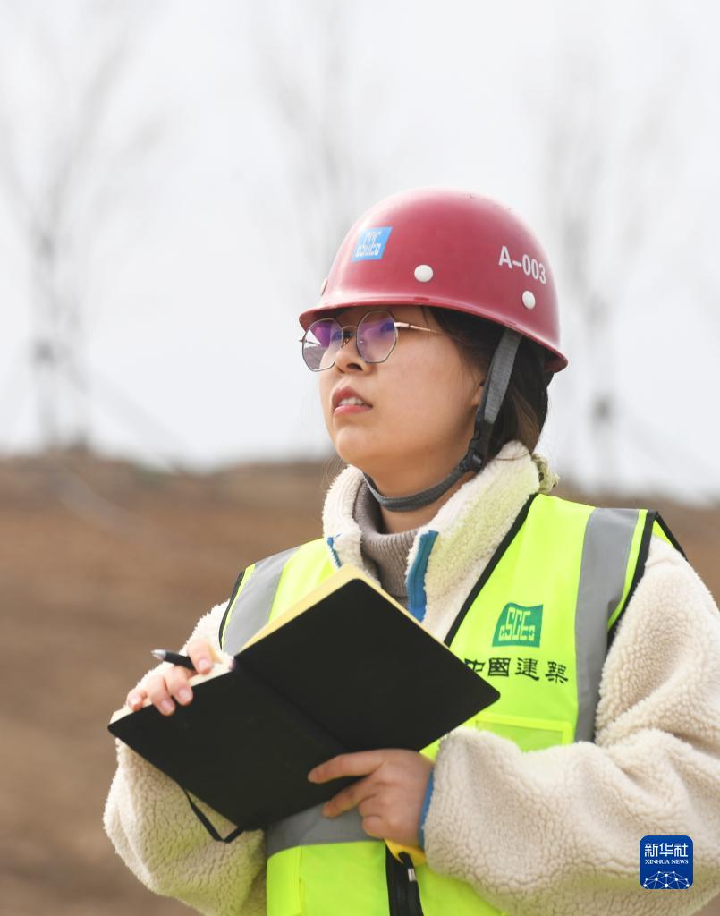 楊鑫博在雄安唐河河谷郊野公園項目現場(chǎng)工作(2月15日攝)。
