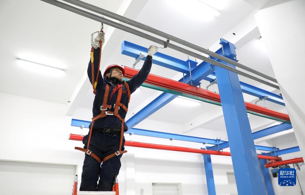 2月16日,工人在即將完工的特高壓套管研制基地內粉刷油漆。