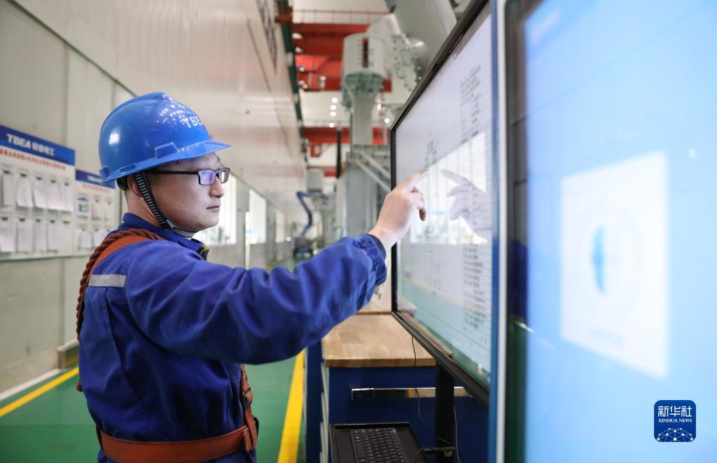 2月16日,一名工人在車(chē)間內電腦上進(jìn)行設備組裝調度。