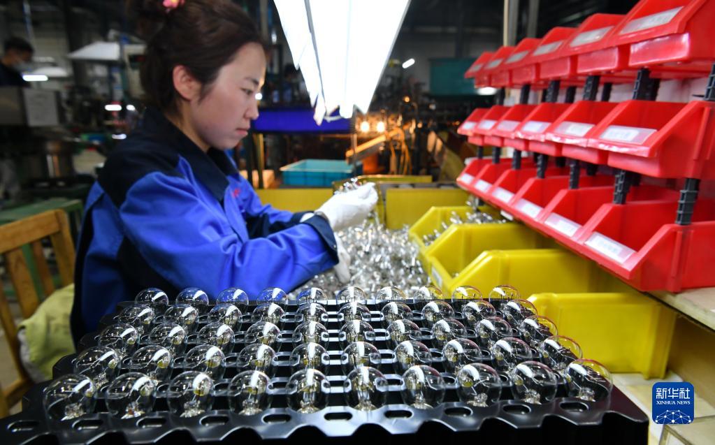 2月16日,在位于獻縣的滄州來(lái)福汽車(chē)照明集團燈泡車(chē)間,工人在檢驗產(chǎn)品質(zhì)量。