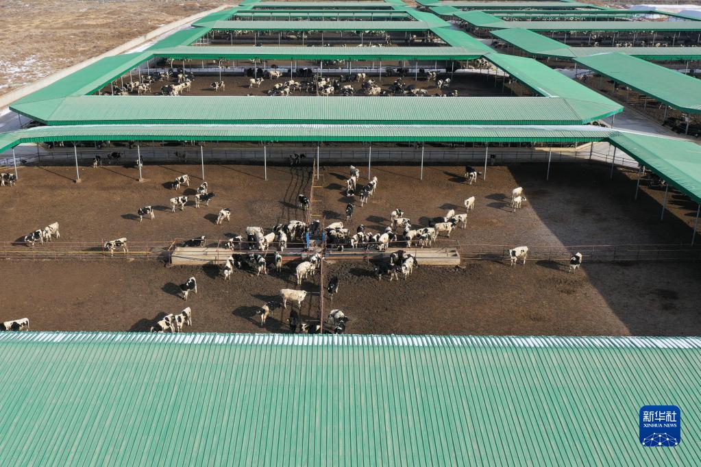 這是2月15日拍攝的古浪縣西靖鎮肉牛養殖基地內的景象(無(wú)人機照片)。