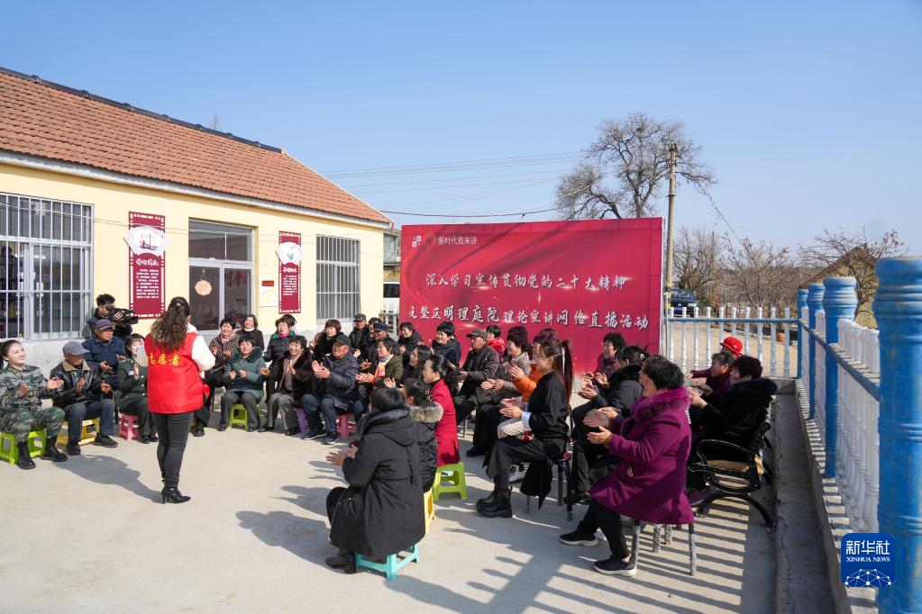 2月16日,大店村村民在村中心大院內參加理論宣講活動(dòng)。