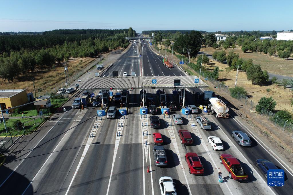 這是2月14日拍攝的位于智利比奧比奧大區的5號公路圣克拉拉主收費站。