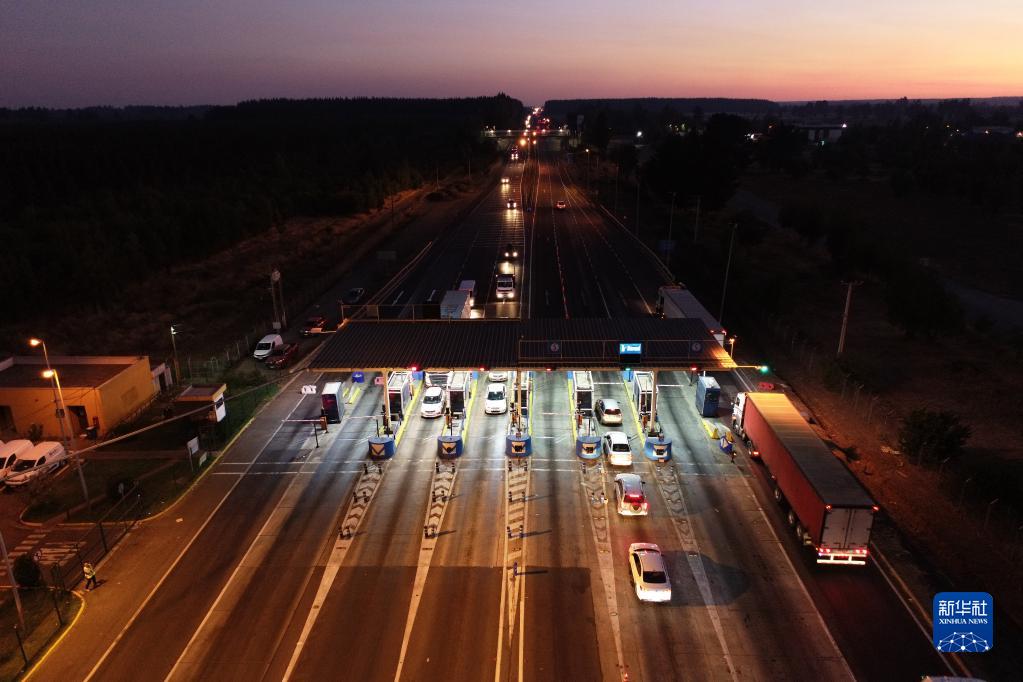 這是2月14日晚拍攝的位于智利比奧比奧大區的5號公路圣克拉拉主收費站。
