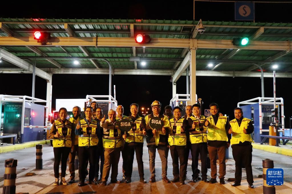 2月15日凌晨,中國鐵建國際集團項目運營(yíng)團隊與項目監理及合作單位人員在智利比奧比奧大區5號公路的圣克拉拉主收費站合影。