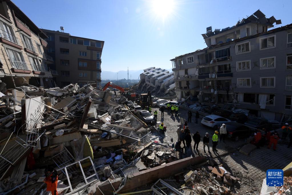 這是2月9日在土耳其哈塔伊省安塔基亞市拍攝的受災景象。
