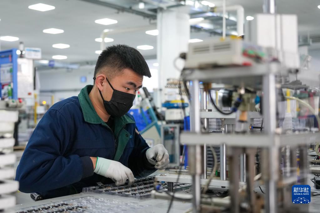 2月16日,員工在位于文登經(jīng)濟開(kāi)發(fā)區的邁世騰科技(山東)有限公司生產(chǎn)車(chē)間內加工電子元器件。這是一家專(zhuān)業(yè)設計、研發(fā)、生產(chǎn)及銷(xiāo)售新型集成電源板用電子元器件、新型電子專(zhuān)用材料的外貿型企業(yè)。