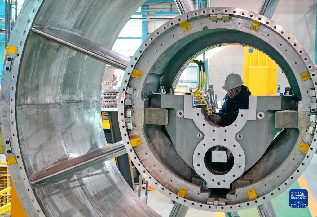 2月16日,哈電集團(秦皇島)重型裝備有限公司的工人在生產(chǎn)車(chē)間工作。