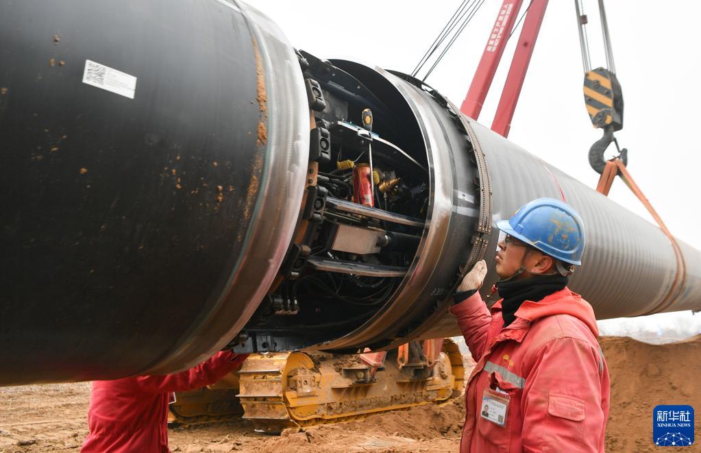 2月16日,施工人員在位于陜西省咸陽(yáng)市禮泉縣的西氣東輸三線(xiàn)工程陜西段管道鋪設施工現場(chǎng)作業(yè)。