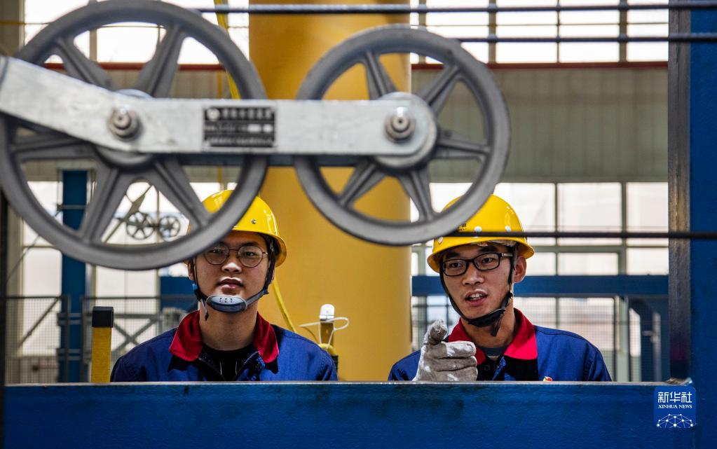 2月15日,在位于陜西省寶雞市的中國中鐵電氣化局高鐵電氣的生產(chǎn)車(chē)間,技術(shù)人員在調試滑輪裝置。