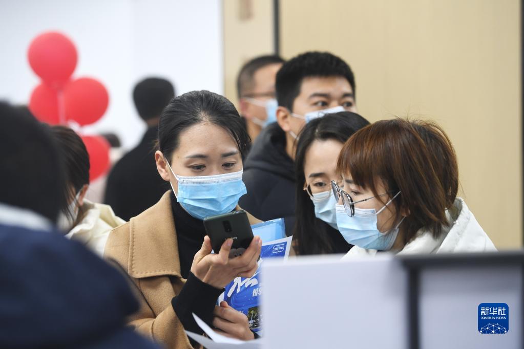 2月17日,求職者在人才集市上通過(guò)手機掃碼查看招聘崗位信息。