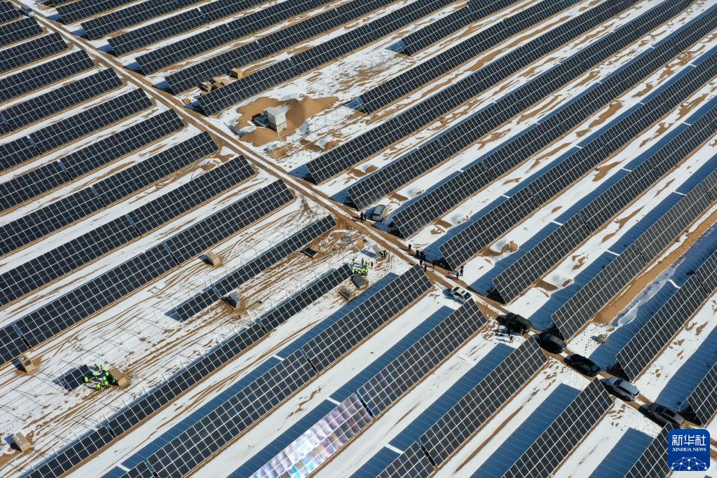 這是2月16日在古浪縣黃花灘拍攝的一處發(fā)電項目建設現場(chǎng)(無(wú)人機照片)。