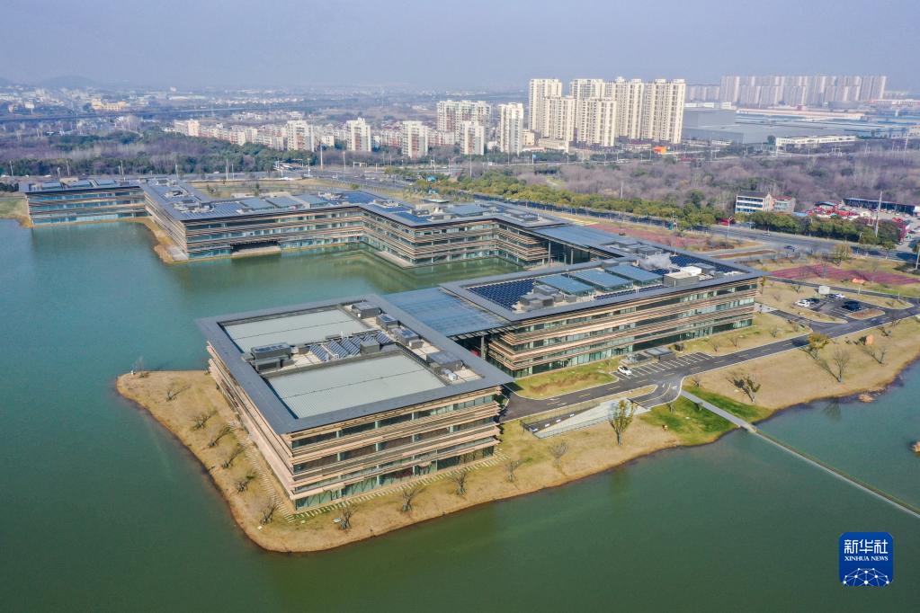 由中國科學(xué)院物理研究所與溧陽(yáng)市合作成立的長(cháng)三角物理研究中心,致力于先進(jìn)儲能技術(shù)產(chǎn)業(yè)化,這是研究中心的外景(2月16日攝,無(wú)人機照片)。