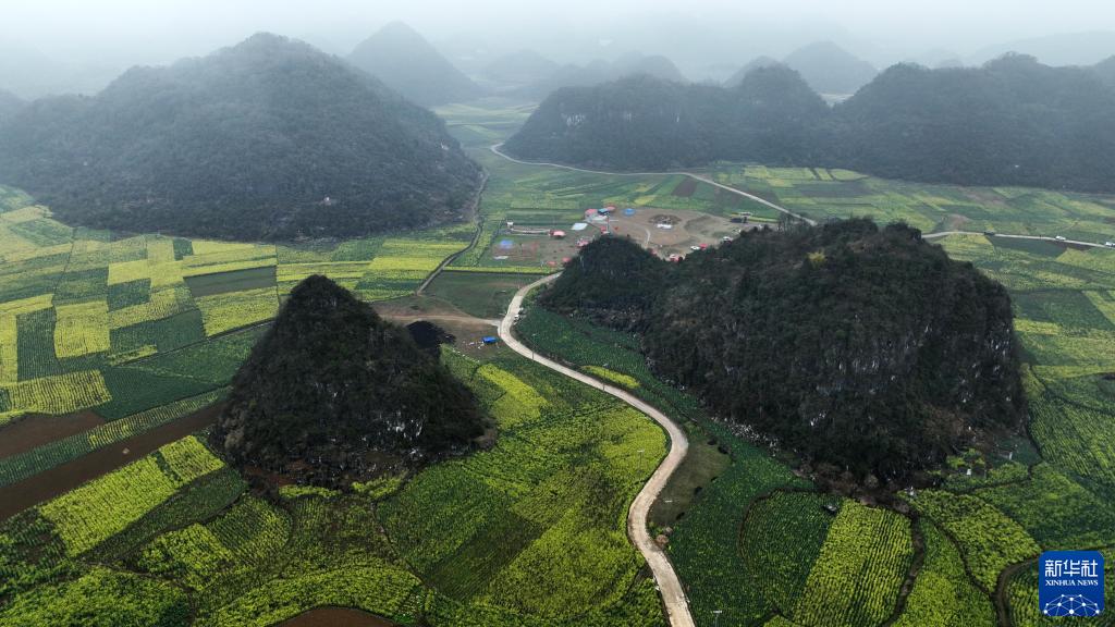 2月17日拍攝的貴州省六盤(pán)水市六枝特區木崗鎮萬(wàn)畝油菜基地(無(wú)人機照片)。