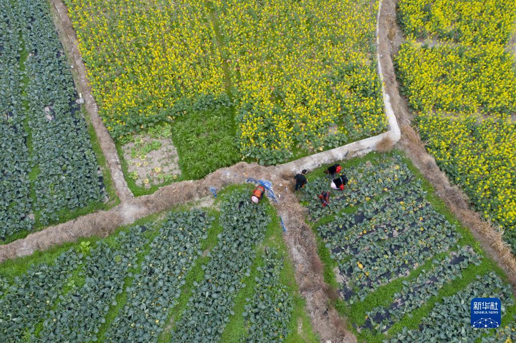 2月17日,貴州省從江縣貫洞鎮的農民在地里勞作(無(wú)人機照片)。