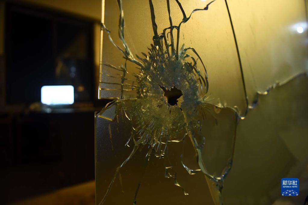 這是2月17日在巴基斯坦卡拉奇拍攝的遇襲警察局內的彈孔。