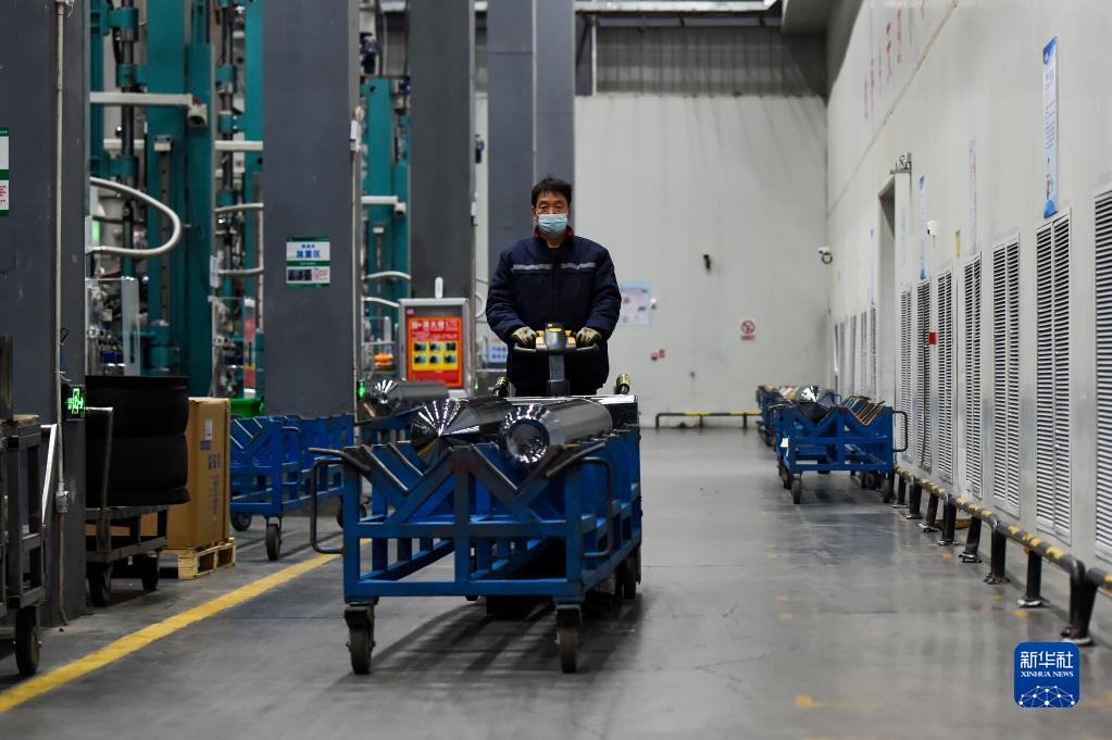 2月17日,在烏海市京運通新材料科技有限公司,工人在搬運硅棒。