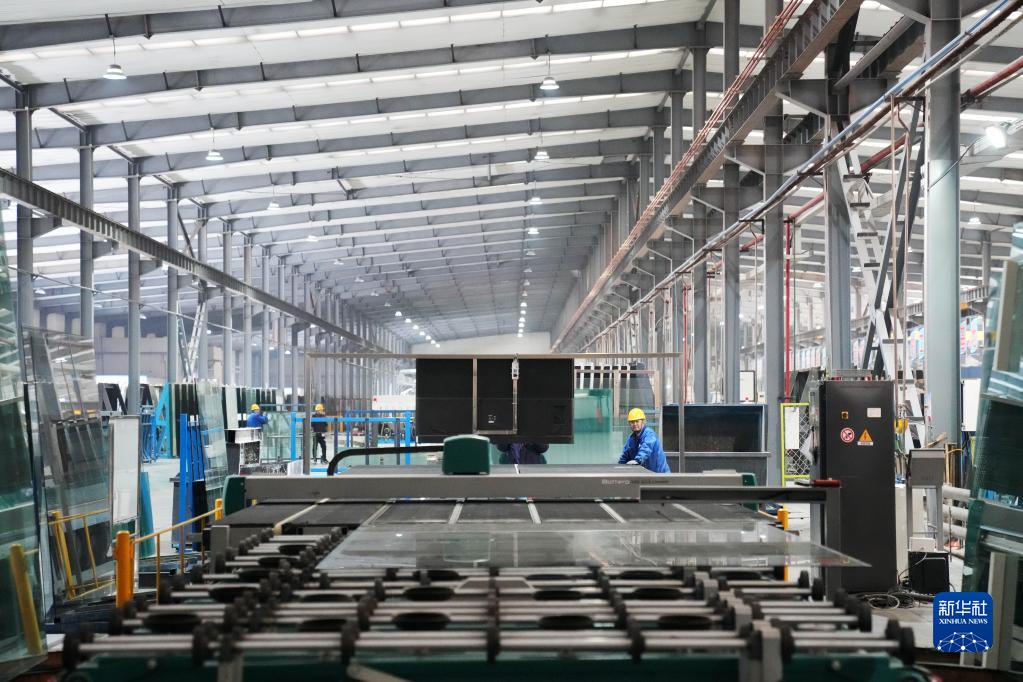 2月17日,在中建材佳星玻璃(黑龍江)有限公司車(chē)間內,工作人員在操控數控設備。