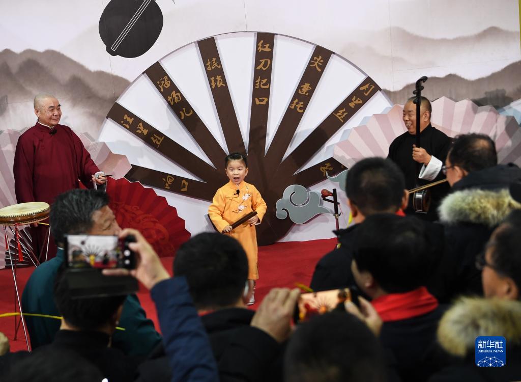 游客在榆林老街的非遺展館內觀(guān)看南陽(yáng)三弦書(shū)表演(2月17日攝)。