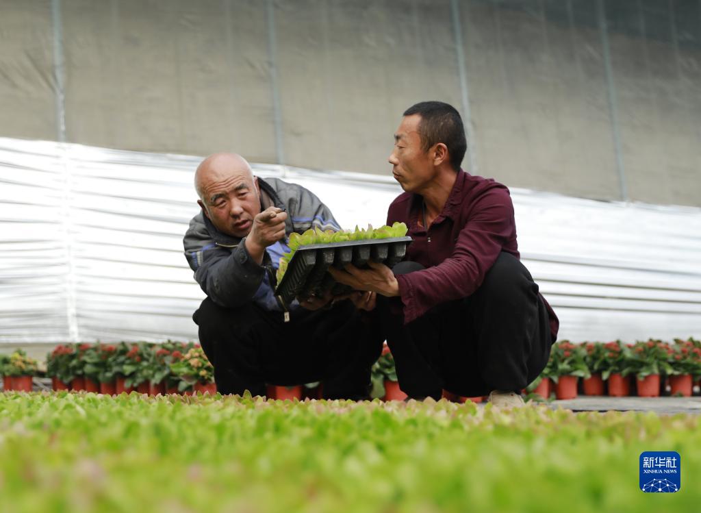 2月18日,在河北省固安縣盛世農合專(zhuān)業(yè)種植合作社,花農探討花苗移栽技術(shù)。