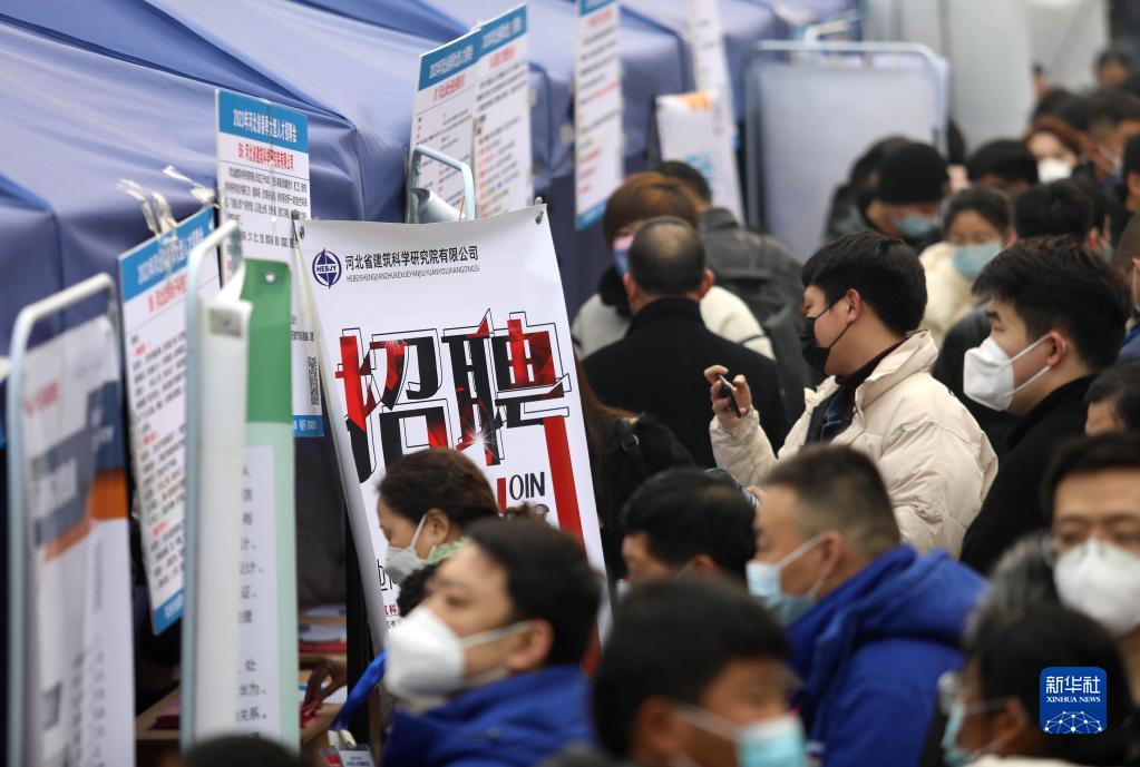 2月18日,在河北省藝術(shù)中心文化廣場(chǎng),求職者在招聘活動(dòng)現場(chǎng)尋找工作機會(huì )。