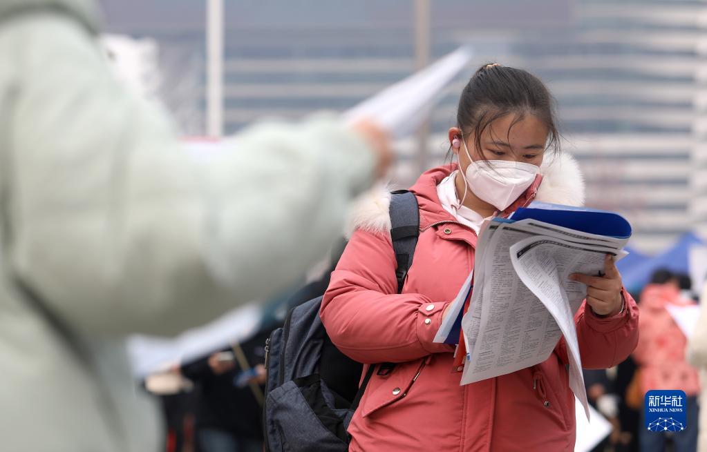 2月18日,在河北省藝術(shù)中心文化廣場(chǎng),求職者在翻閱招聘信息,尋找工作機會(huì )。