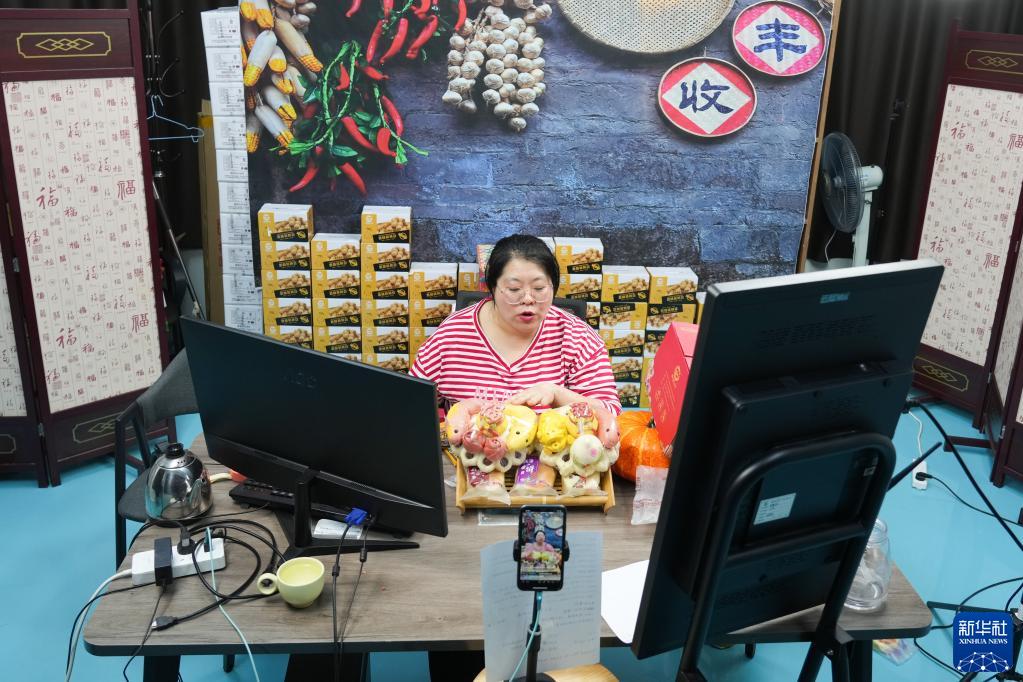 2月17日,威海長(cháng)林生態(tài)農業(yè)有限公司員工直播銷(xiāo)售花餑餑產(chǎn)品。