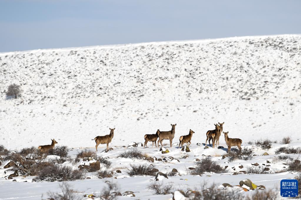 2月18日在內蒙古賀蘭山國家級自然保護區內拍攝的馬鹿。