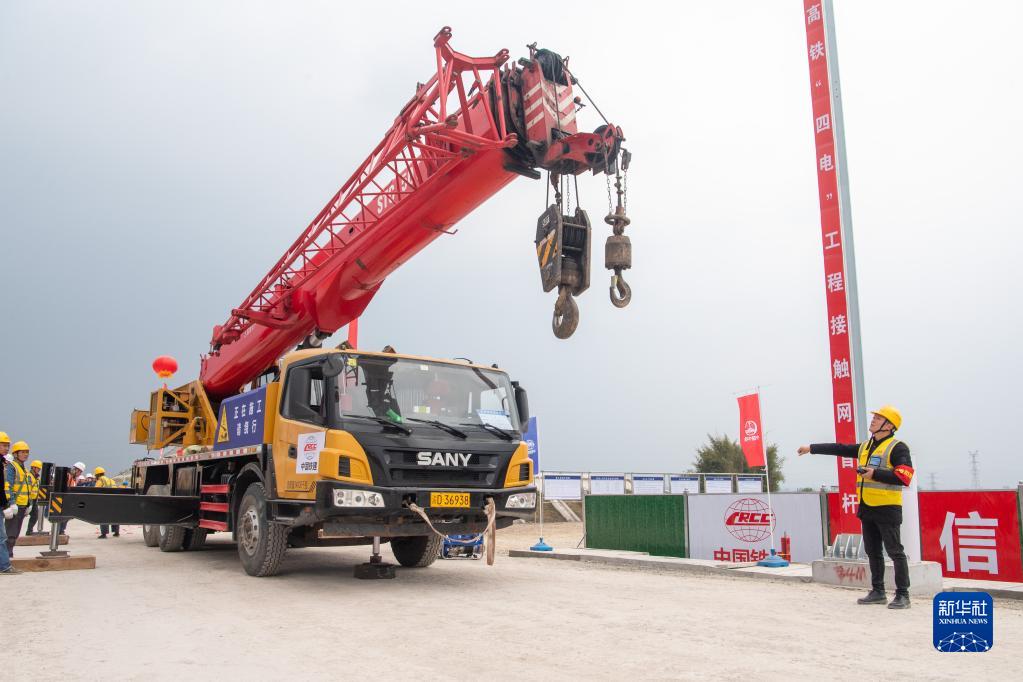 當日,在渝昆高鐵重慶永川區施工現場(chǎng),施工人員將首根接觸網(wǎng)桿吊裝到位,標志著(zhù)渝昆高鐵川渝段供電、通信、信號、電力“四電”工程正式啟動(dòng)。渝昆高鐵是全國鐵路網(wǎng)“八縱八橫”主通道之一的京昆通道的重要組成部分,設計時(shí)速350公里。