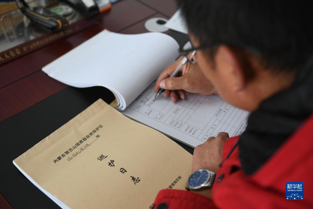 2月18日,哈拉烏管理站副站長(cháng)李東在記錄巡護日志。