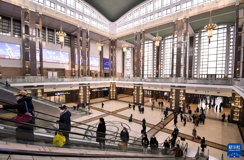 北京火車(chē)站在保持歷史原貌的前提下對候車(chē)大廳的裝飾、燈光等進(jìn)行了升級改造(2023年2月17日攝)。