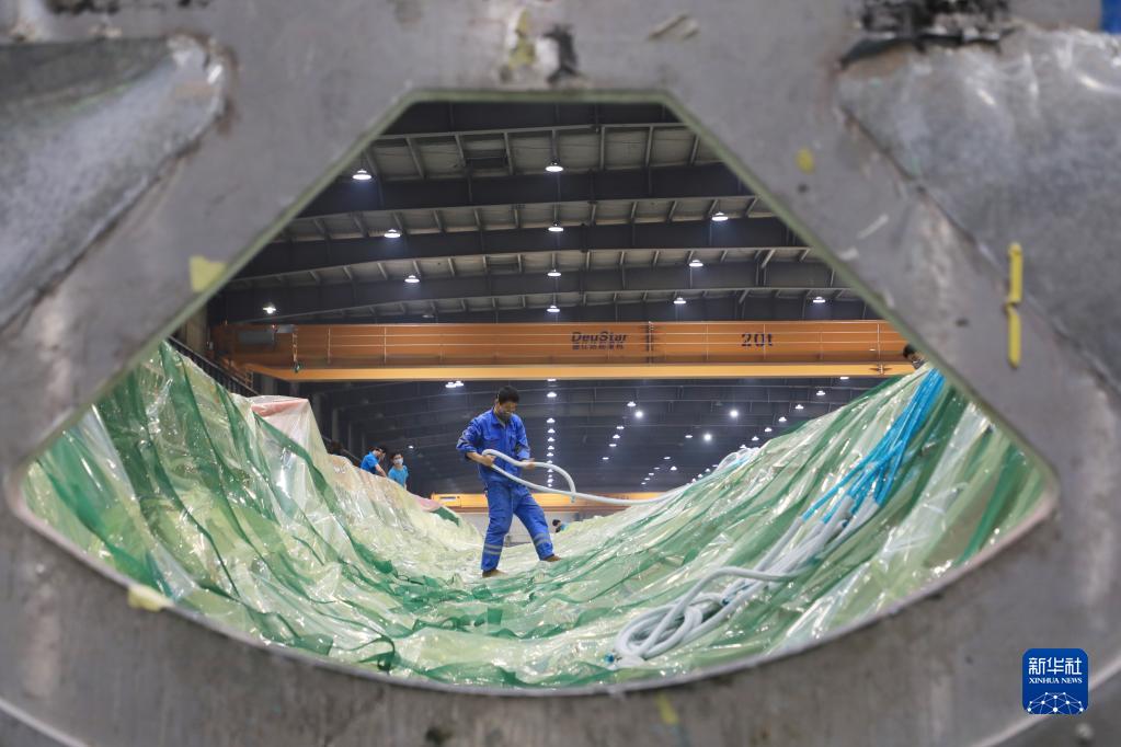 2月17日,在酒泉經(jīng)濟技術(shù)開(kāi)發(fā)區的一家風(fēng)電葉片制造企業(yè),工人在風(fēng)機葉片生產(chǎn)線(xiàn)為葉片灌注做準備。
