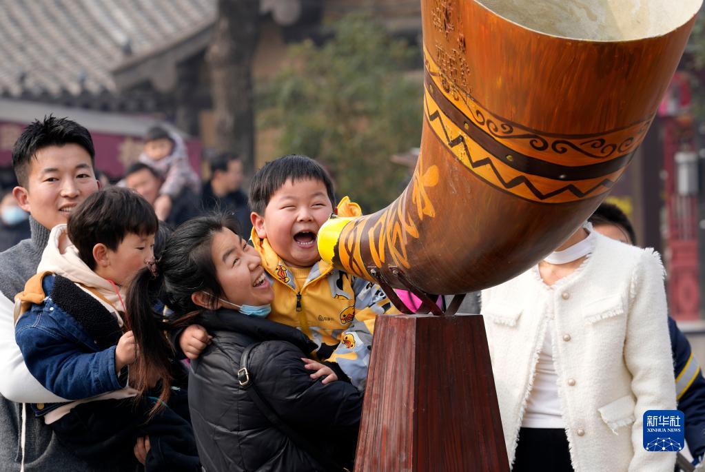 2月18日,游客在開(kāi)封清明上河園景區內游玩。
