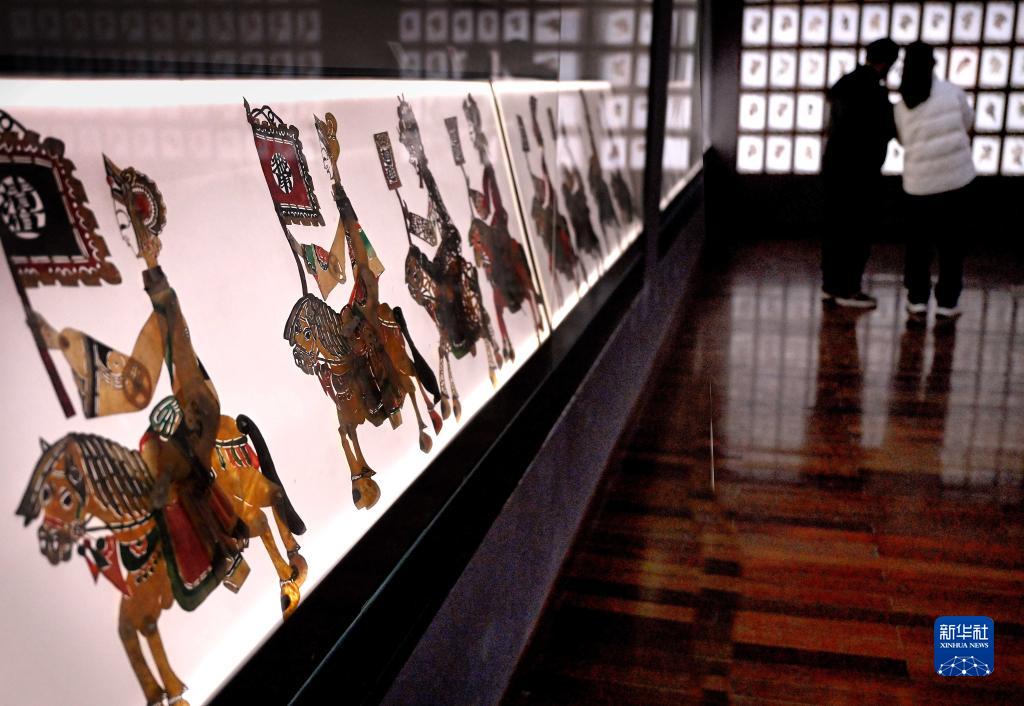 游客在開(kāi)封清明上河園景區內觀(guān)看展示的皮影(2月14日攝)。