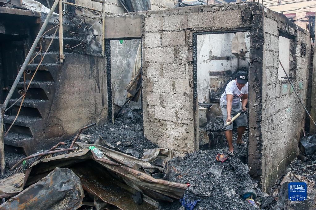 2月19日,菲律賓奎松的居民清理被燒毀的房屋。