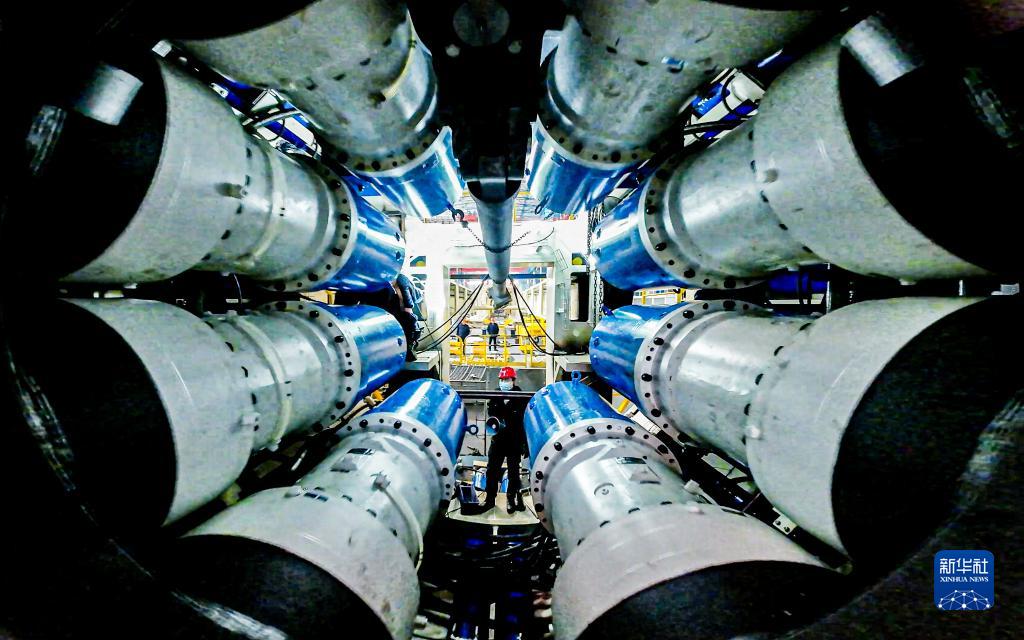 2月18日拍攝的位于遼寧省沈陽(yáng)市的北方重工有限公司盾構機生產(chǎn)車(chē)間(無(wú)人機照片)。