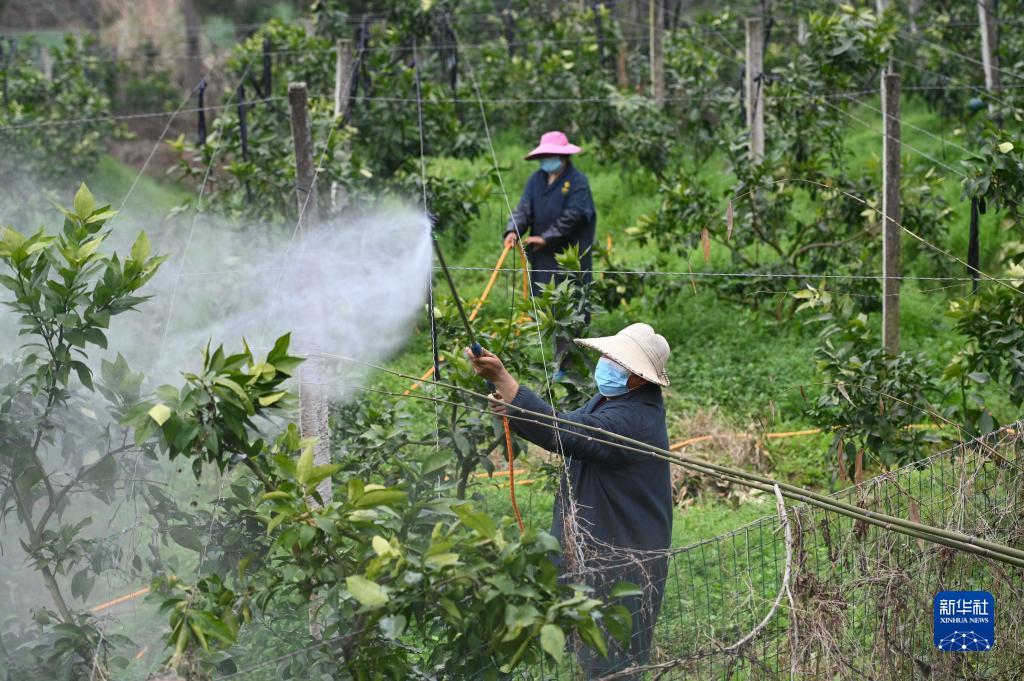 2月19日,四川省內江市東興區高梁鎮方家溝村村民在果園內進(jìn)行病蟲(chóng)害防治。