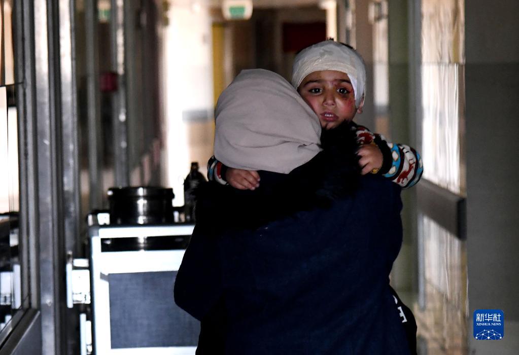 2月17日,在敘利亞阿勒頗省首府阿勒頗市,一名在地震中受傷的兒童在醫院接受治療。