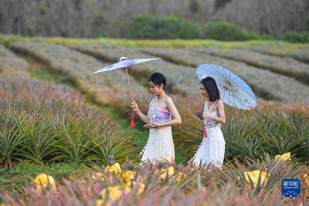 2月18日,游客在位于海南省儋州市的嘉禾共享農莊鳳梨園游玩。