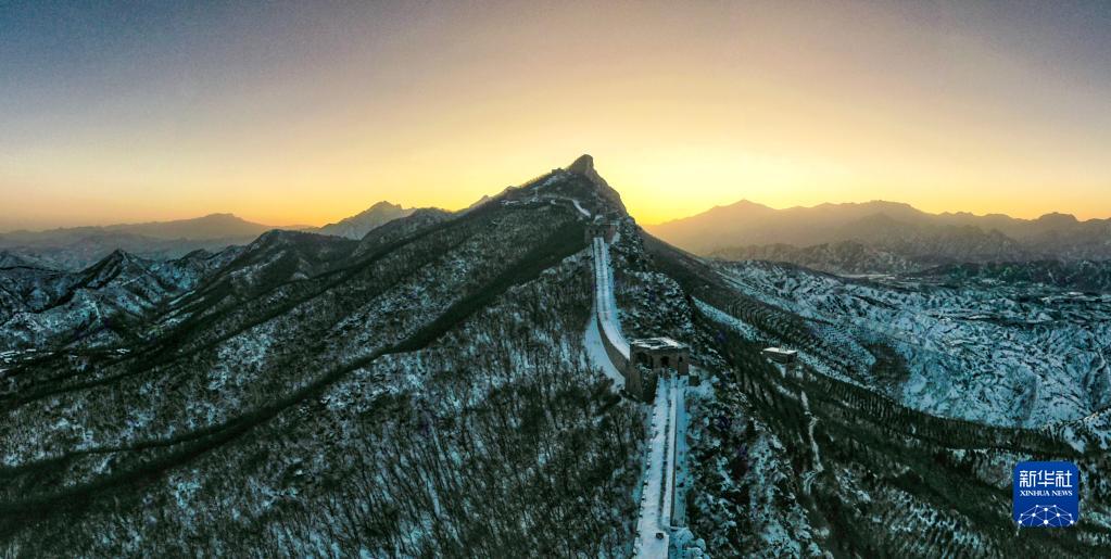 2月19日,這是在晨曦中拍攝的雪后司馬臺長(cháng)城(無(wú)人機照片)。