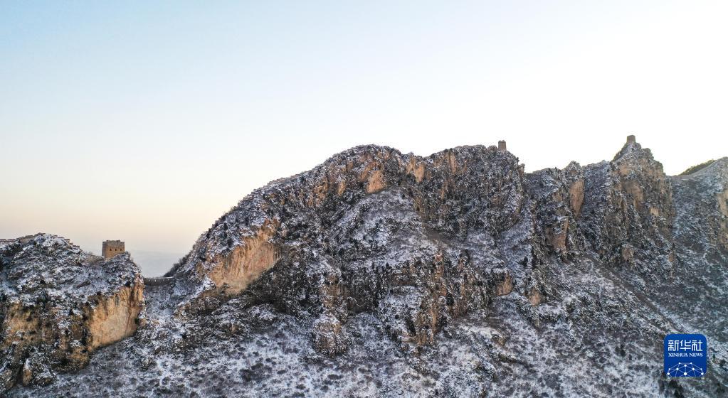 2月19日,這是在晨曦中拍攝的雪后司馬臺長(cháng)城(無(wú)人機照片)。