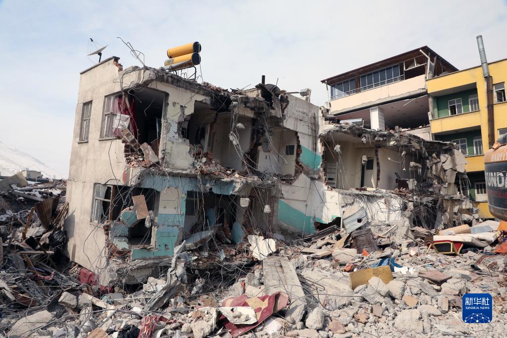 這是2月19日在土耳其南部卡赫拉曼馬拉什省卡赫拉曼馬拉什市拍攝的震后景象。