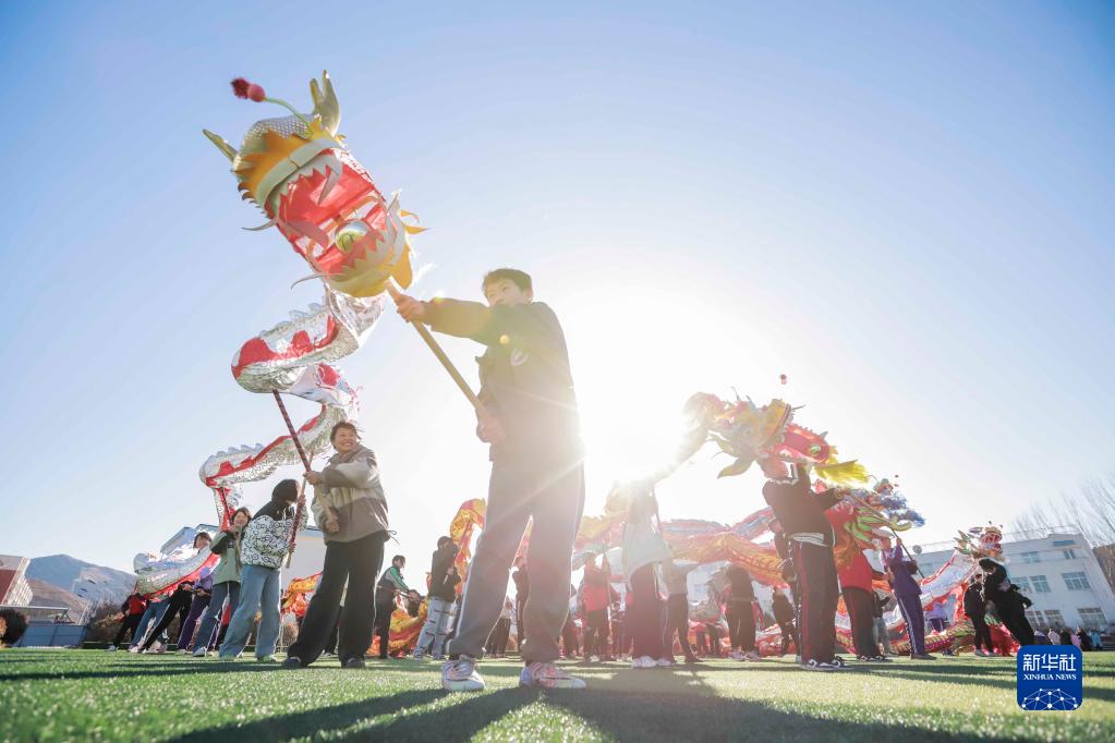 2月20日,河北省遵化市東舊寨鎮梁屯中心小學(xué)的學(xué)生表演舞龍。