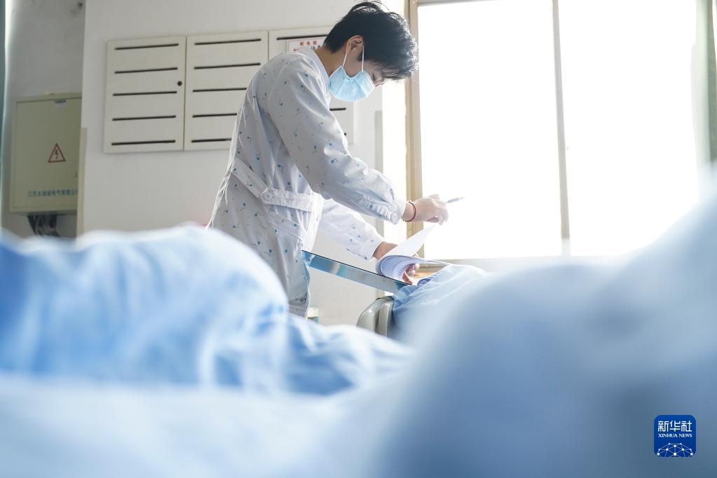 2月15日,在南通常青樂(lè )齡護理院,李楠楠填寫(xiě)護理記錄表。
